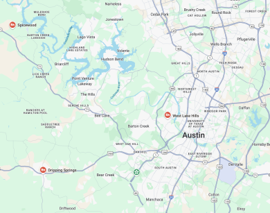 We proudly serve Austin and the surrounding communities of Round Rock, Lakeway, Pflugerville, Bee Cave, Dripping Springs, Georgetown, Buda, Kyle, Spicewood, Cedar Park, Leander, Hutto, Manor, and West Lake Hills, Texas.